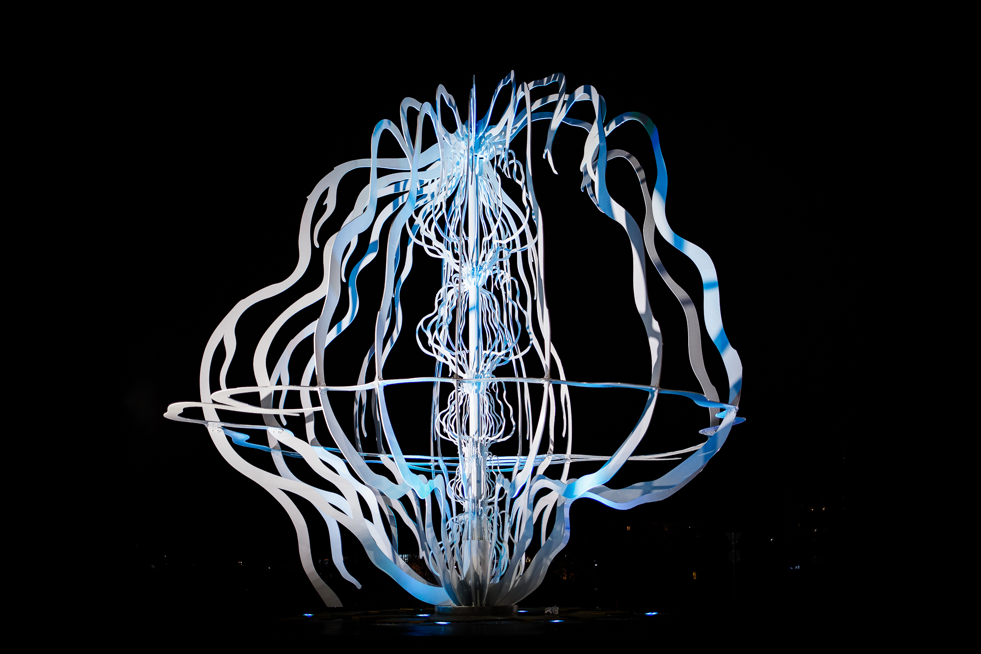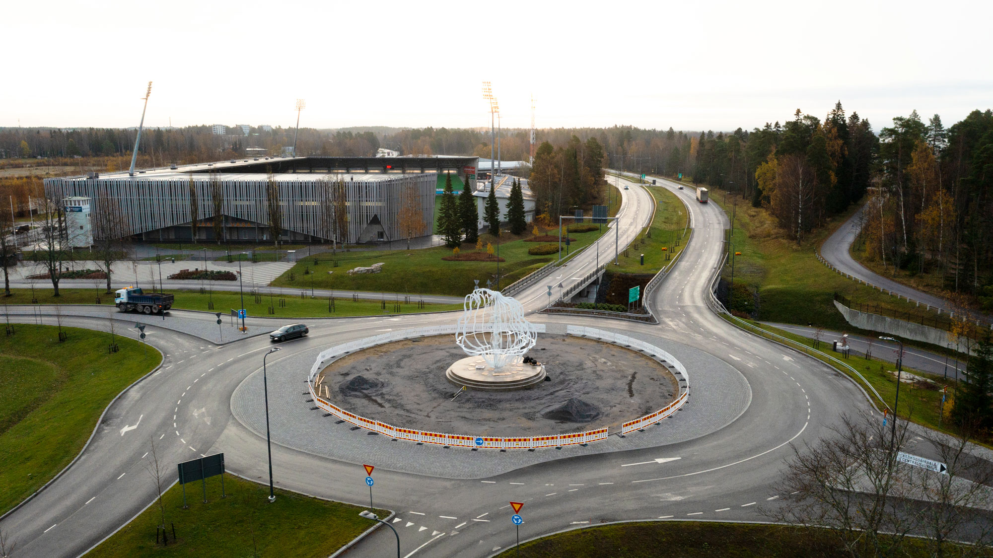 2021 / Maalattu ruostumaton teräs, ajastettu valo/ 8m x 8m / Liikenneympyrä, Vaasa